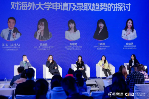 大会特别设置圆桌论坛,邀请了五位来自北京各大公办国际部的校长、升学导师,与现场观众分析了海外大学的招生录取政策、数据,分享申请规划路径和面试成功经验。